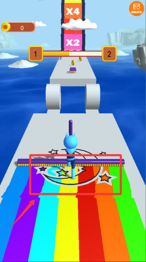 2、收集赛道上的颜料罐可解锁绘制功能,长按屏幕使用马桶塞工具临摹虚线图案,成功后可触发加速或清除障碍等效果。