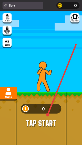 1、点击【TAP-START】,进入游戏,操控火柴人开始跑酷冒险,准备跨越地形、挑战敌人。