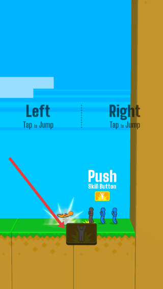 3、遭遇敌人(蓝色火柴人),点击“Push”技能按钮,释放攻击,清除障碍,推进跑酷关卡。