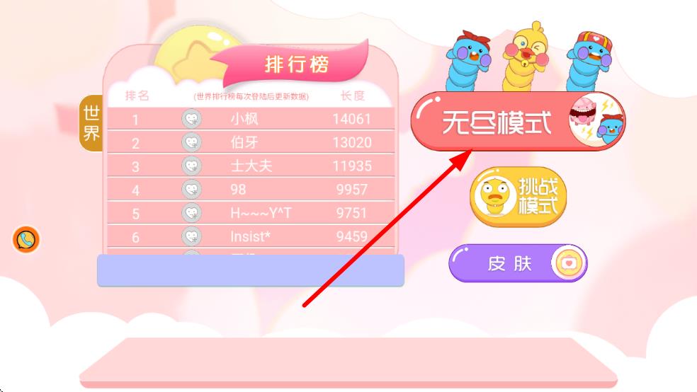 1、进入游戏后选择乱斗模式,滑动屏幕操控蛇蛇在场景中移动,吞噬光点快速增加体长与能量值。