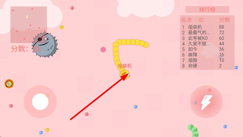 2、对战时观察其他蛇蛇走位,预判其移动轨迹,用蛇身横向移动形成障碍,拦截对手使其撞身淘汰并夺取光点。