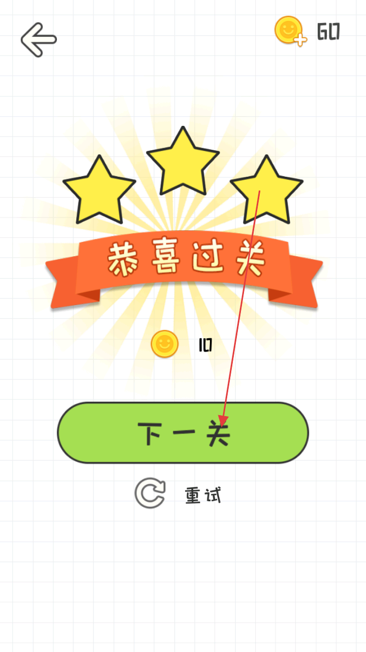 3、通关后获金币、星星奖励,点击“下一关”挑战新谜题,利用道具(好友求助、提示)突破难关。