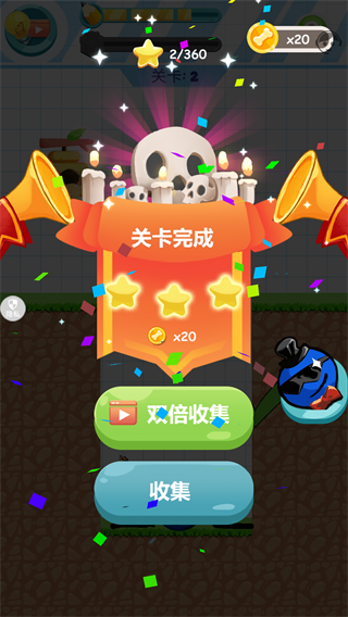 3、成功保护狗头通过关卡,即可获取金币、道具等奖励,利用奖励解锁新关卡或强化画线能力,继续开启更多挑战。