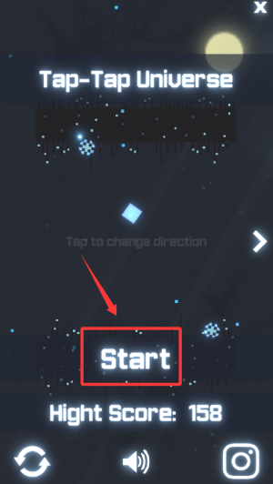 1、点击Start开始游戏,通过点击改变飞船方向获取高分。