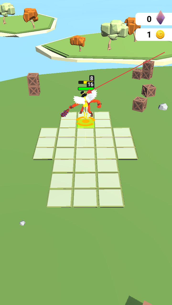 2、在棋盘赛道,靠近怪物自动攻击,注意血条,利用武器特性(不同金币解锁)击败敌人。