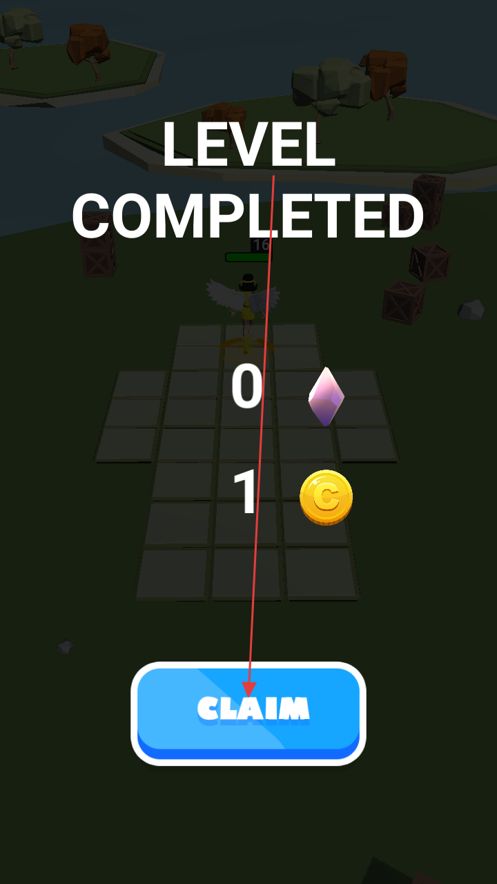 3、通关后点“CLAIM”领金币、水晶奖励,用于解锁新武器、升级,挑战更高难度关卡。