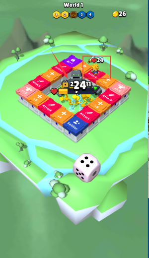 1、掷骰子决定步数,移动触发格子事件攻击怪物获取经验。