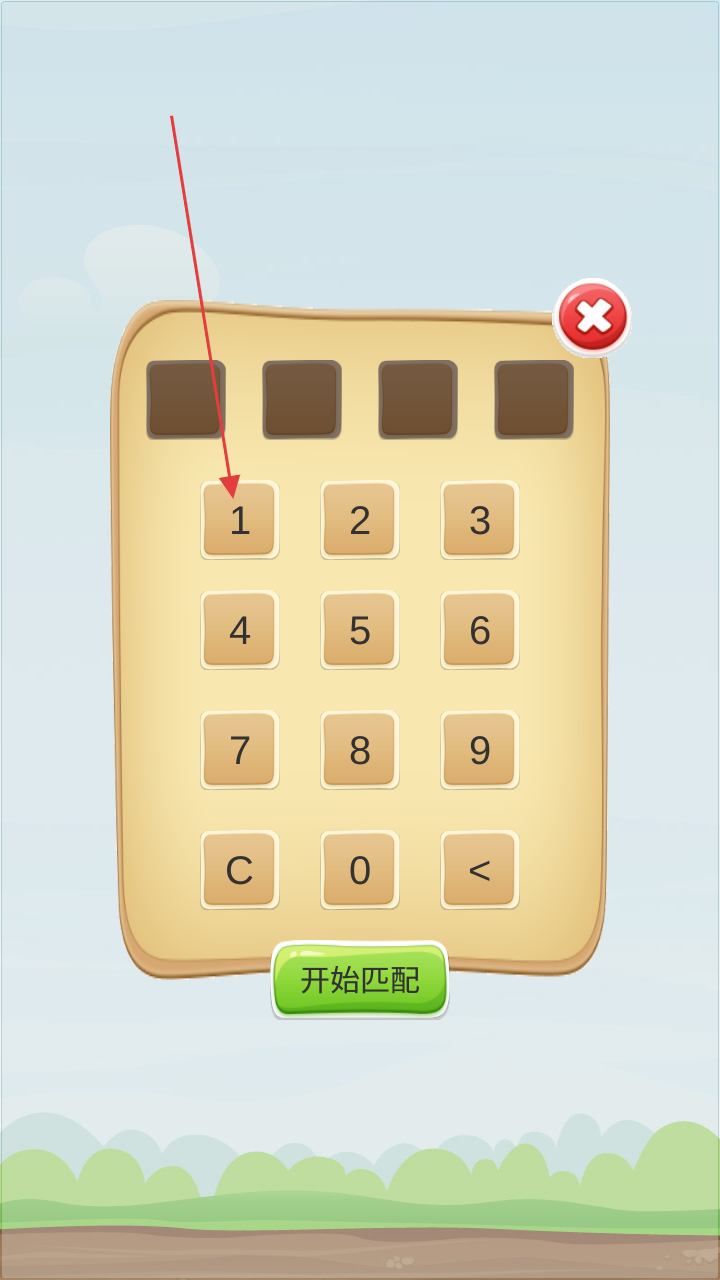 2、若选“暗号匹配”,输入数字暗号(如按“1”等按键),点击“开始匹配”找对手。