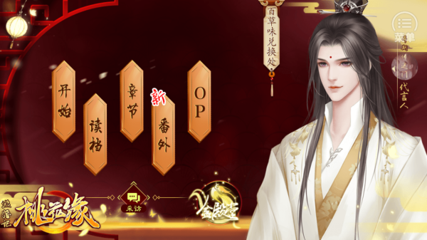 1、点击【开始】开启《逃婚记・桃花缘》新剧情,续玩选【读档】,查看章节点【章节】,体验额外内容选【番外】。