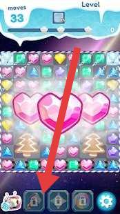 1、点击底部箭头指向的功能按钮,触发道具或技能,辅助消除指定区域宝石,推进Level关卡。