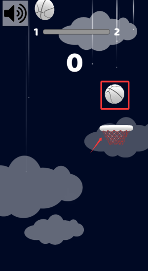 2、选择标1或2的云朵区域,将篮球投入红色边框篮筐得分。