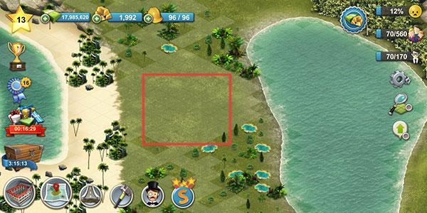 1、下载安装后进入岛屿建设界面,这里会出现一片可建造的空地,在地图上以白色方格表示。