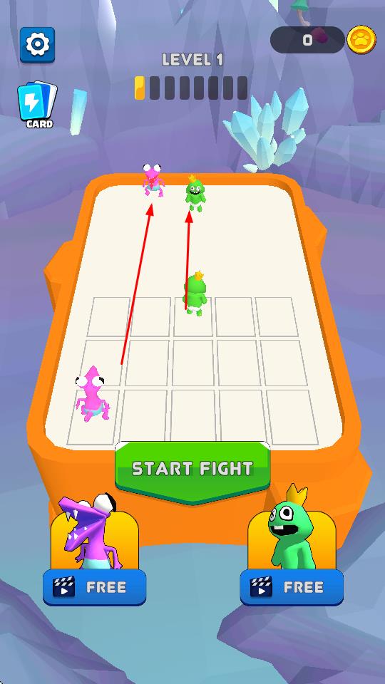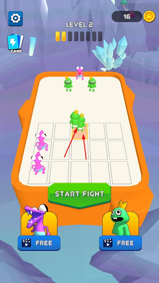 1、在关卡棋盘,拖动己方怪兽到格子,规划站位,构建战斗阵型。