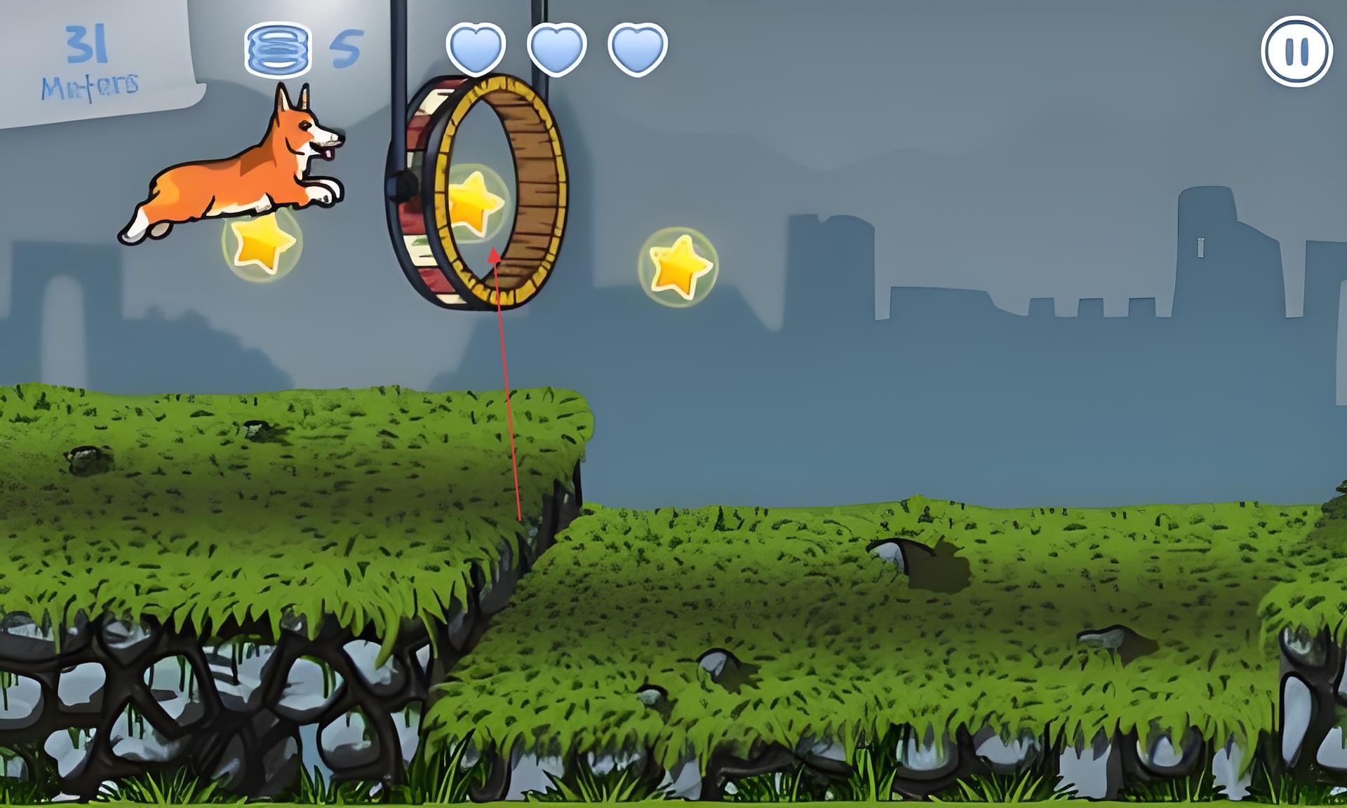 1、进入游戏后在角色界面选择狗狗外观,点击「开始冒险」进入城市场景,通过点击屏幕控制狗狗跳跃,长按可实现高跳,滑动屏幕可让狗狗左右闪避障碍。