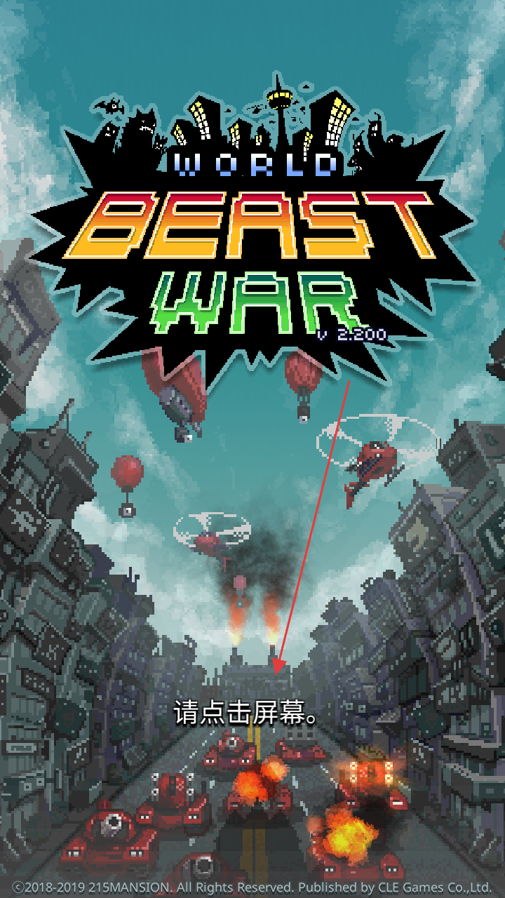 1、进入游戏界面,点击屏幕开启游戏,踏入怪兽战争冒险世界。
