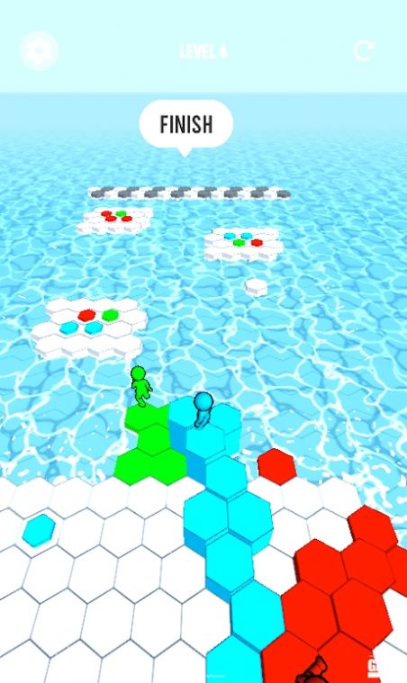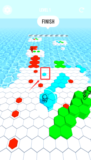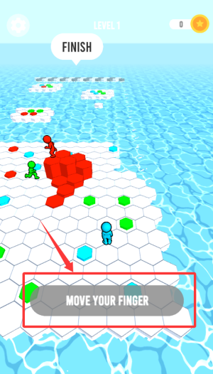1、滑动操控蓝色小人,按六边形路线躲避红色敌人抵达终点。