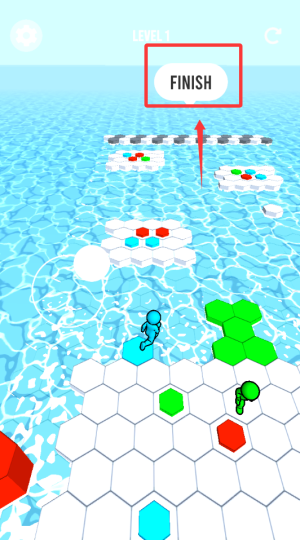 3、控制角色跳跃彩色平台,按箭头指引到达FINISH标志处。