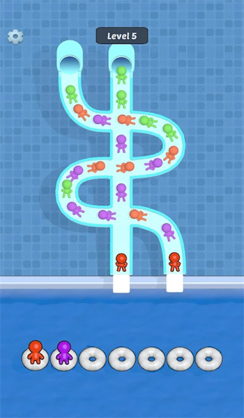 1、清新爽快的消除玩法带来全新体验,通过滑动手指引导小人冲下滑梯,溅起的水花特效与欢快音效完美配合,营造出夏日水上乐园的欢乐氛围。