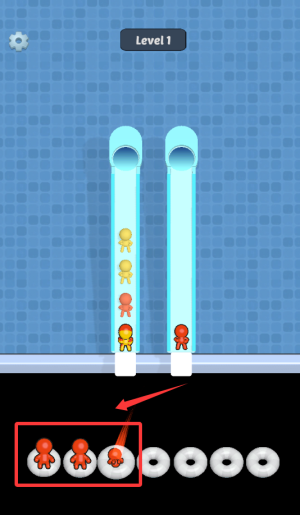 2、将红色小人从管道移入下方对应圆环,完成目标排列。