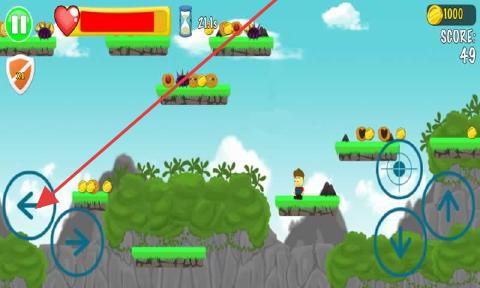 2、在游戏场景,左侧方向键控制左右移动,跨越地形、收集金币,应对关卡挑战。