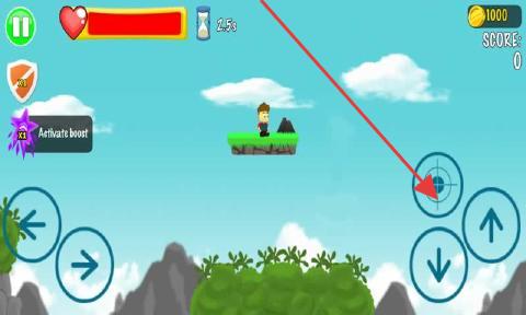 3、右侧按键,上方瞄准键可攻击敌人,配合上下键调整操作,保障角色前行与生存。