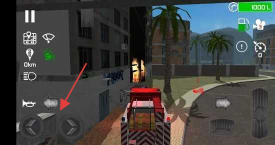 2、用左侧方向按键,驾驶消防车奔赴起火建筑(墙面冒火)。