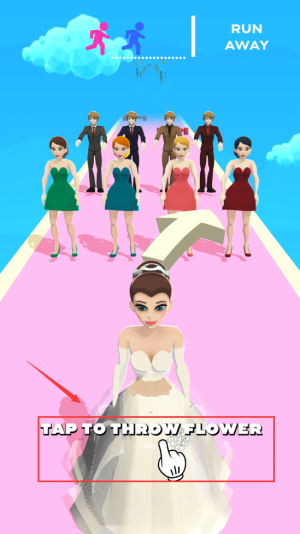 1、点击屏幕扔出花束,帮助新娘逃脱人群追赶。