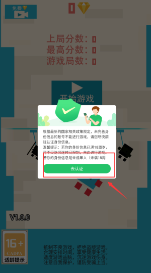 1、点击开始游戏按钮,根据提示前往身份认证页面完成验证。