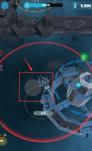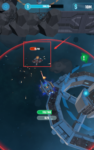 1、点击屏幕操作飞船,注意生命值178/350。