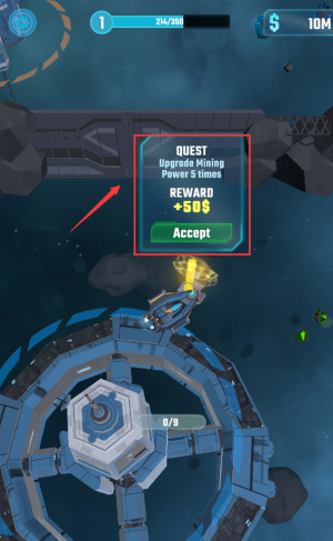 3、接受采矿升级任务,消耗10M金币提升214/350能量值。