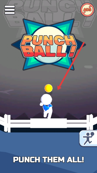 1、点击启动页,进入【Punch-Ball!】,操控角色(戴黄球帽子),准备在擂台对战。