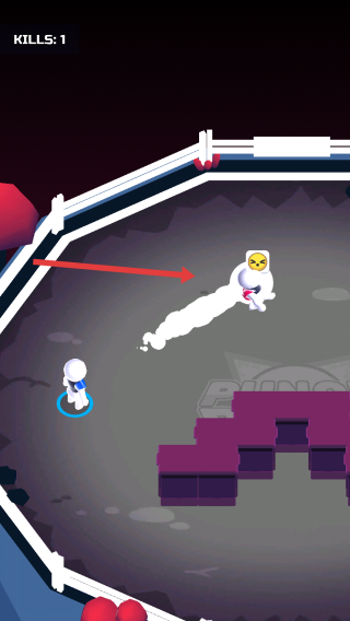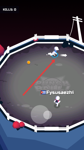 2、在战斗场地,控制角色移动(箭头指向),接近敌人(“Fysusaezhi”),用拳击球攻击,积累KILLS。