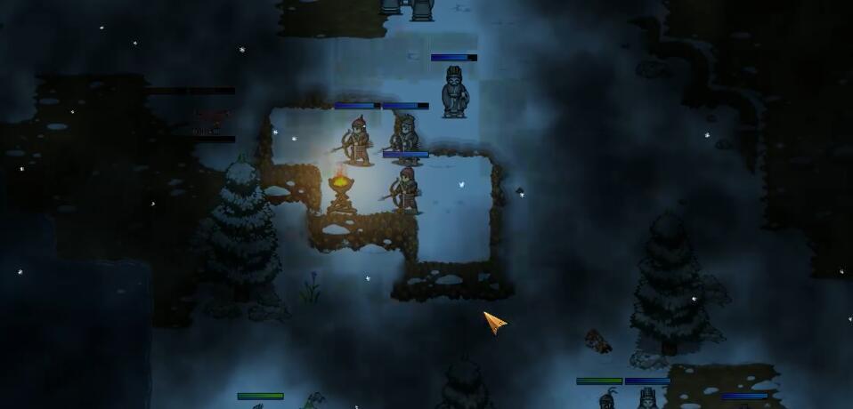 1、地形互动:岩石阻挡、火把区域(隐含buff),利用地形卡位(围堵敌人、护核绕路),形成“地形利用→动线规划”的空间博弈。