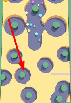 1、进入界面后滑动屏幕控制球球方向,对准坑洞滚动填充,注意避开尖刺陷阱与移动障碍物,完成基础填坑操作。