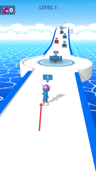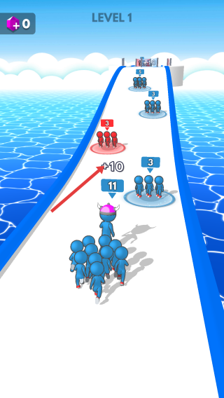2、队伍扩充:沿跑道前进,收集同色小人(如“+10”标识),壮大队伍规模。