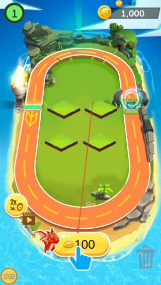 1、点击底部“100金币”按钮,消耗金币在赛道空地召唤基础萌龙。