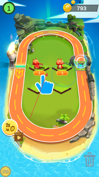 3、合成后萌龙将沿赛道自动跑酷,获取金币、道具,用于解锁新空地、召唤更多萌龙,循环养成。