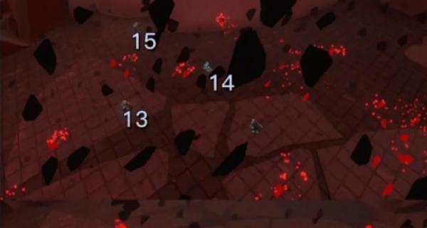 2、接近持续红石雨阶段,固定移动键、拉动视角转向,沿斜向路径避砸,依次献祭【13、14、15】号石像,切忌跳跃或停留。
