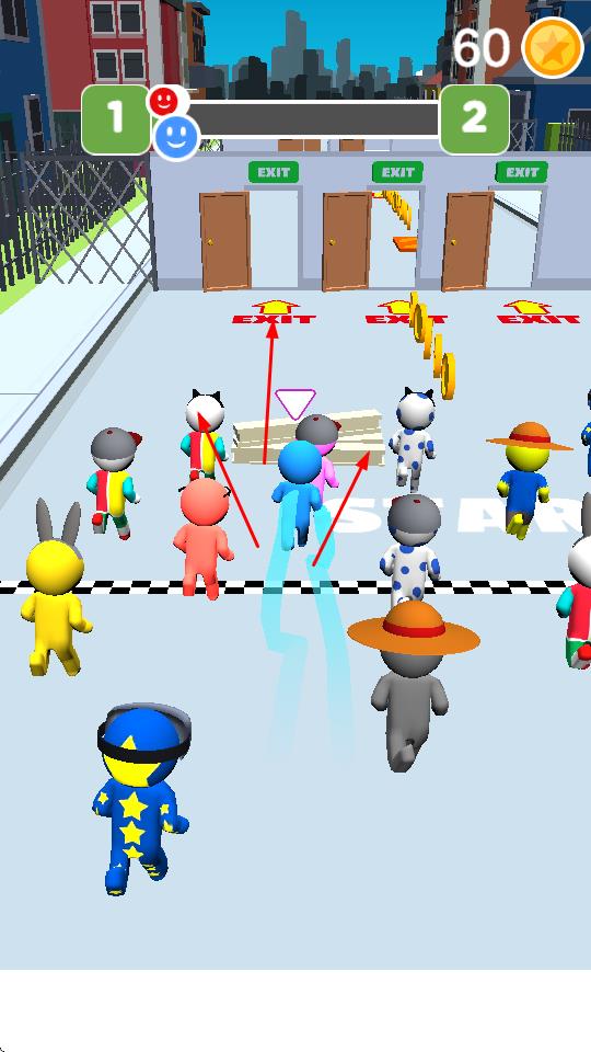 1、在起点区域,操控角色选择出口方向,规划逃生路线,争取率先抵达终点。