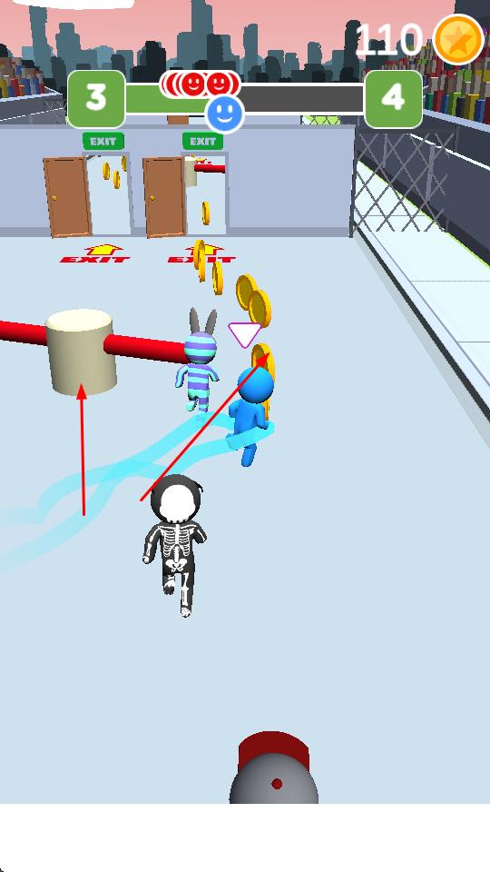 2、奔跑中拾取金币,积累资源,可用于解锁角色、提升属性,增强游戏优势。