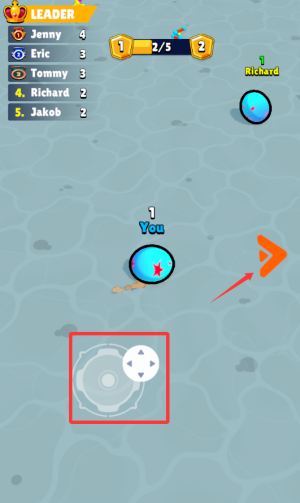 2、使用下方摇杆控制You角色移动,避开其他玩家追击。