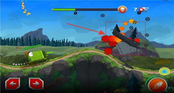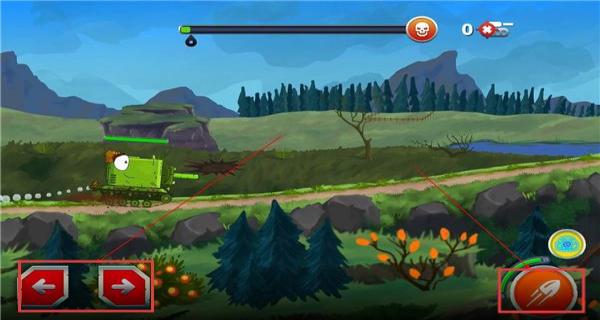 1、坦克移动与射击操控:玩家在游戏中通过左右方向键操控坦克在横版场景中移动,点击攻击键发射炮弹,瞄准并击败敌方坦克,同时注意躲避对方的攻击。
