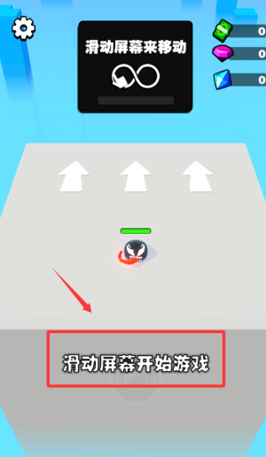 2、按红色箭头提示滑动屏幕,开始移动角色。
