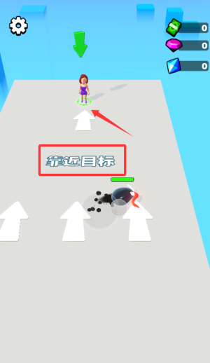 3、跟随白色箭头方向移动,靠近下方红色目标物。