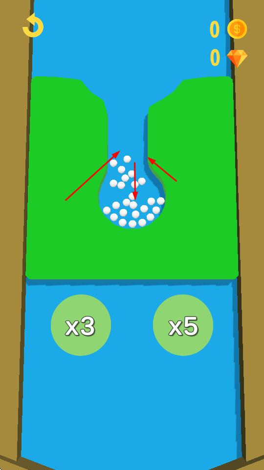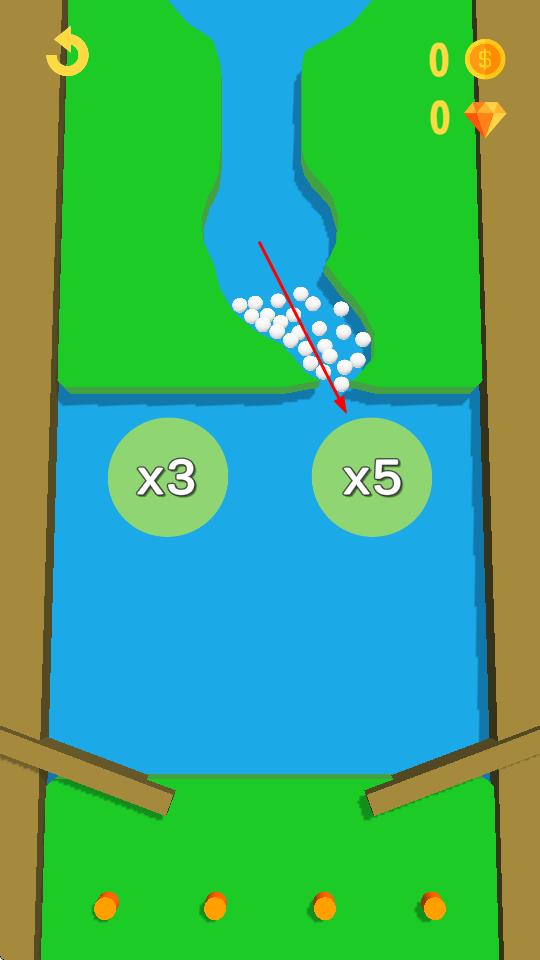 2、在小球流动路径,选择触发“x3”“x5”等倍数按钮,使经过的小球数量按对应倍数倍增,提升得分。
