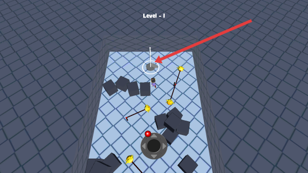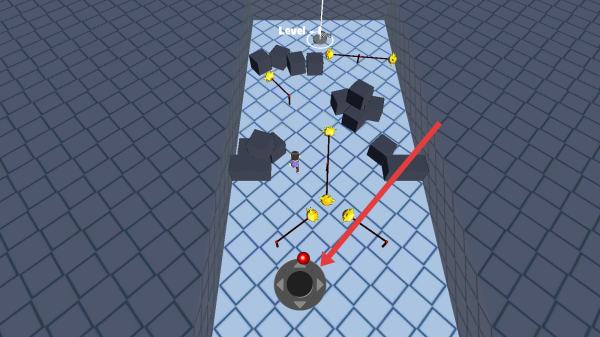 2、在关卡中,靠近箭头指向的黑色机关(红钮),触发或躲避,规划路线,避开黑色方块障碍。