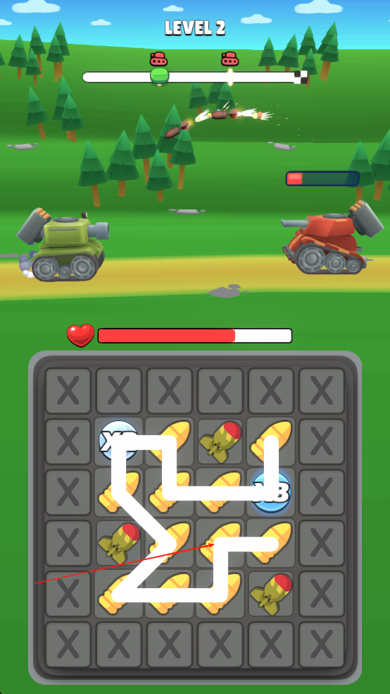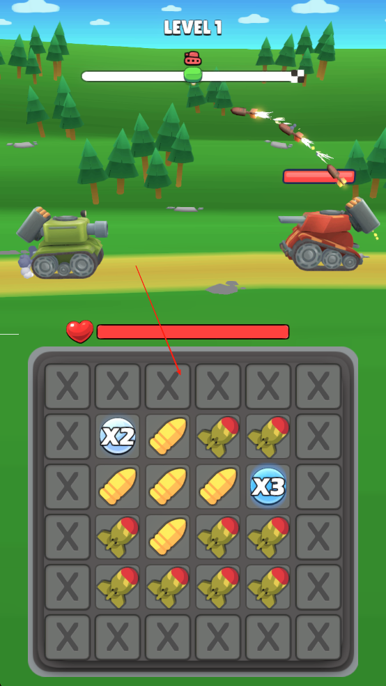 2、合成策略玩法:通过连线数量与子弹类型的组合变化,衍生出多种威力等级的炮弹,玩家需根据敌方坦克弱点选择合成策略。