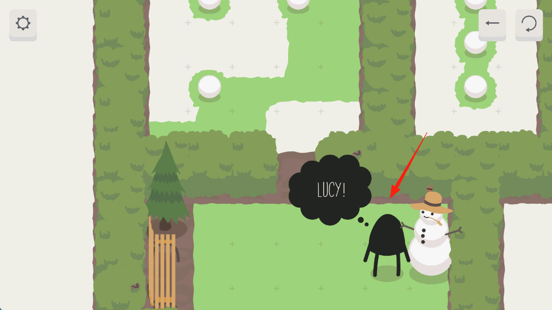 2、操控黑色角色,在地图中寻找路径,靠近雪人,触发新对话推进。
