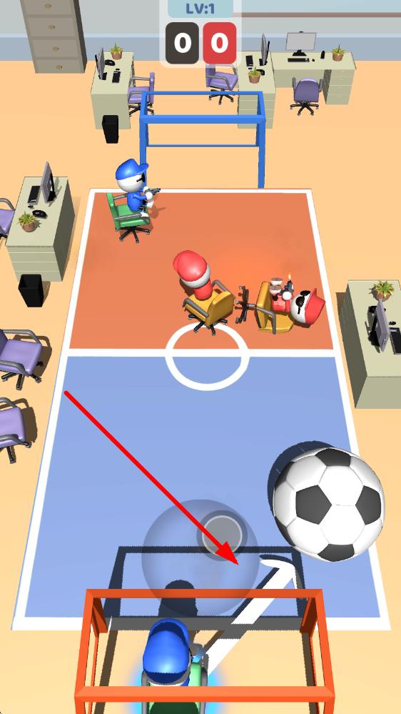 3、通关剧情模式解锁「办公室」「教室」等5大主题球场,每个球场有专属机关(如教室场的讲台斜坡可反弹射门),挑战「转椅世界杯」联赛。