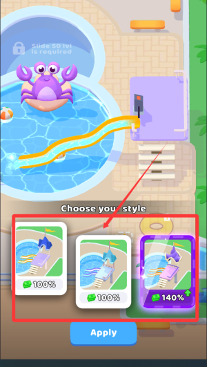 1、游戏内置海量装饰素材库,涵盖炫酷水滑梯、热带风情景观和创意拍照区等丰富元素,让玩家能够自由发挥创意打造个性化水上乐园。